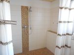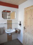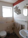 Das Badezimmer im Untergeschoss ist mit Toilette, Waschbecken und großer ebenerdiger Dusche ausgestattet.