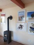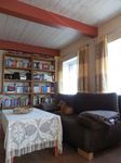 Hier kann man es sich gemütlich machen. Die Stube ist ein Durchgangszimmer mit Schlafsofa, dänischem Ofen, Schreibtisch und viel Lesematerial.