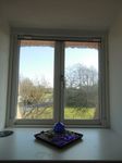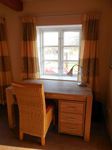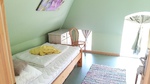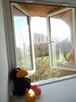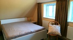 Vom Schlafzimmer auf der Westseite hat man einen schönen Ausblick über den Garten, die angrenzende Weide und den Sonnenuntergang. Hier steht ein Doppelbett (160x200). Der Fernseher kann in jedem Zimmer des Obergeschosses angeschlossen werden.